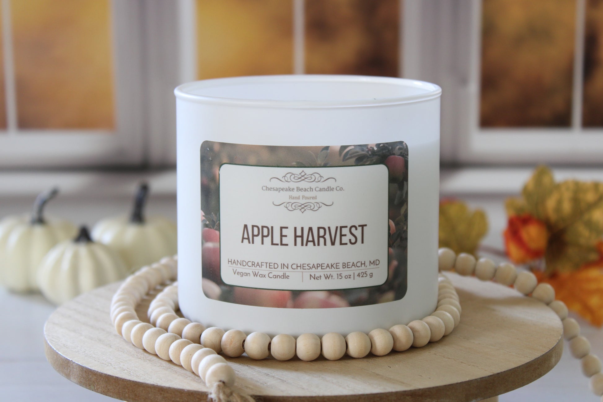 Our Apple Harvest candle captures the heart of autumn in a warm, nostalgic blend of crisp orchard air and spiced sweetness. Juicy, sun-ripened apples take center stage, wrapped in layers of fragrant clove, warm cinnamon, and a pinch of nutmeg for that classic seasonal spice. Hints of bright orange peel add a fresh, citrusy lift, while creamy vanilla softens the edges with a cozy finish. This inviting fragrance is perfect for creating a welcoming, homey atmosphere that evokes a perfect fall day, regardless of the season.