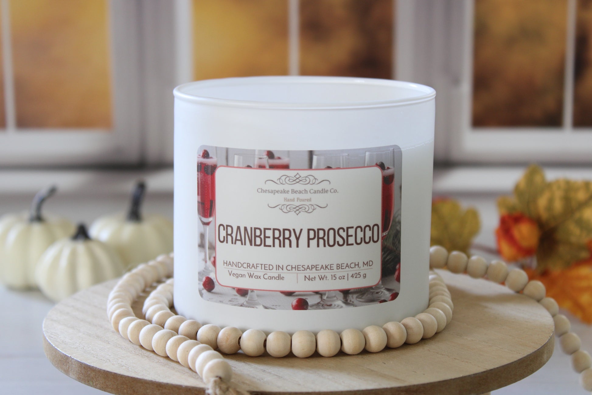 The Cranberry Prosecco candle offers a delightful combination of tart cranberry notes, cheerful citrus, and the sparkling essence of champagne, creating a refreshing and uplifting aroma that will add a touch of luxury and festivity to your space.