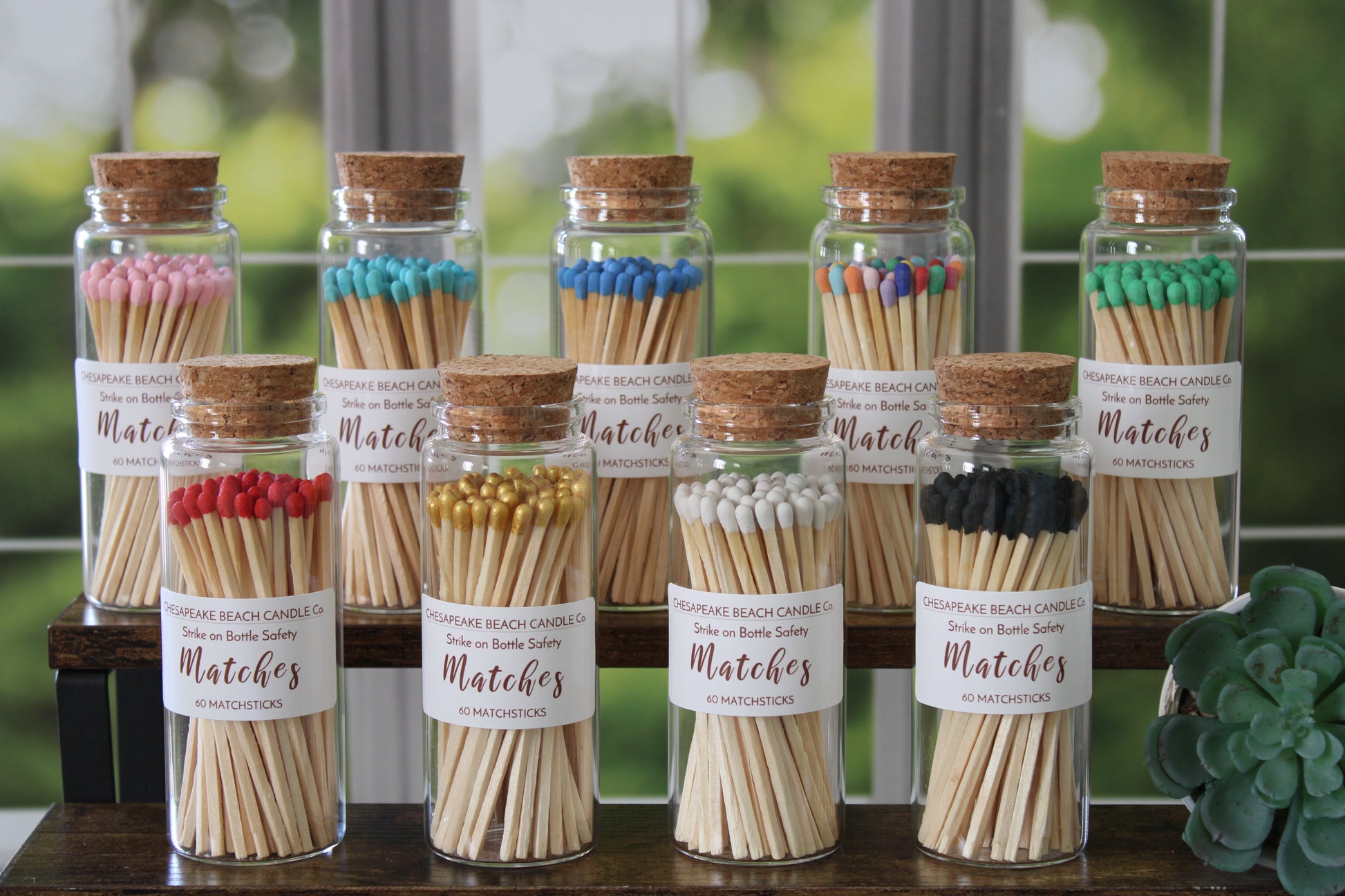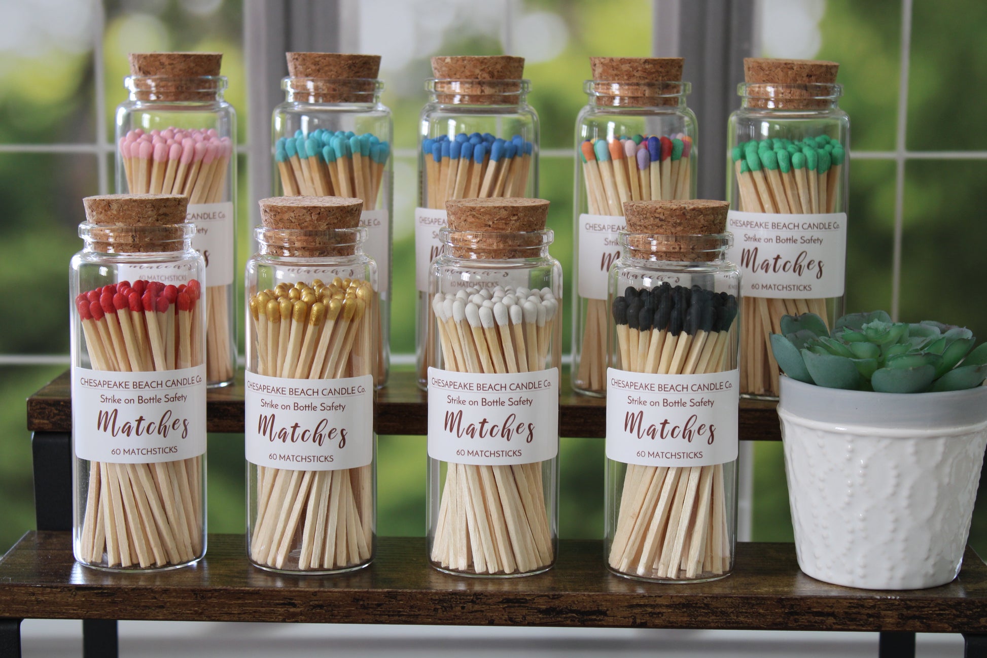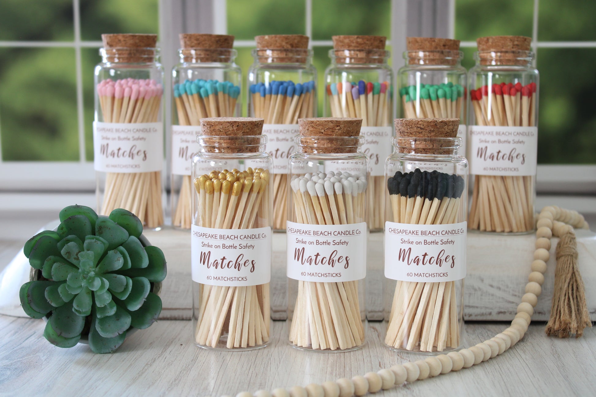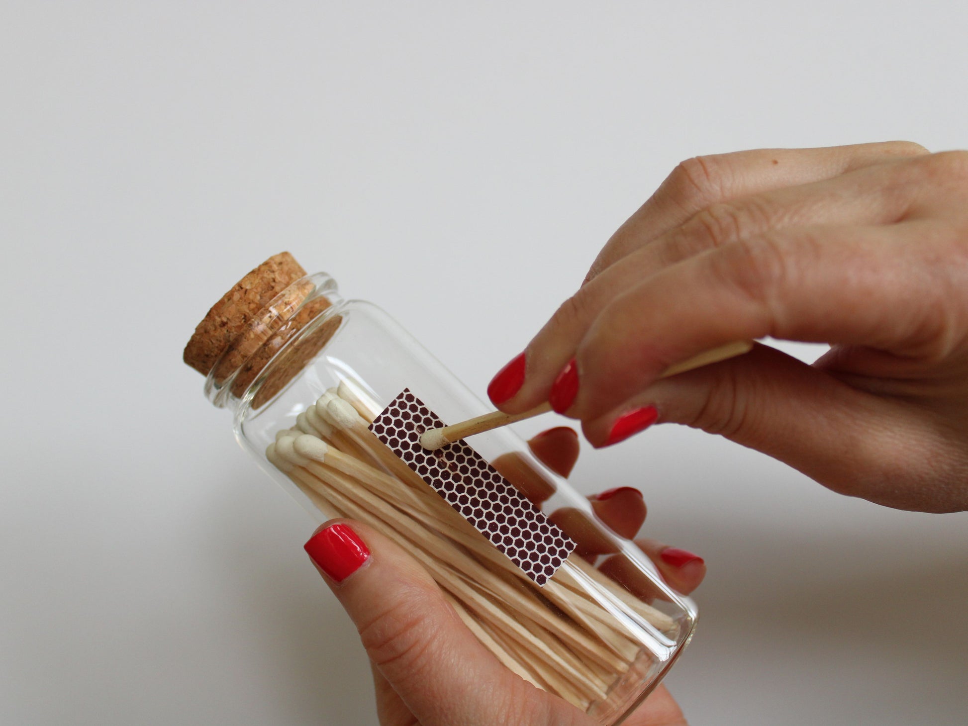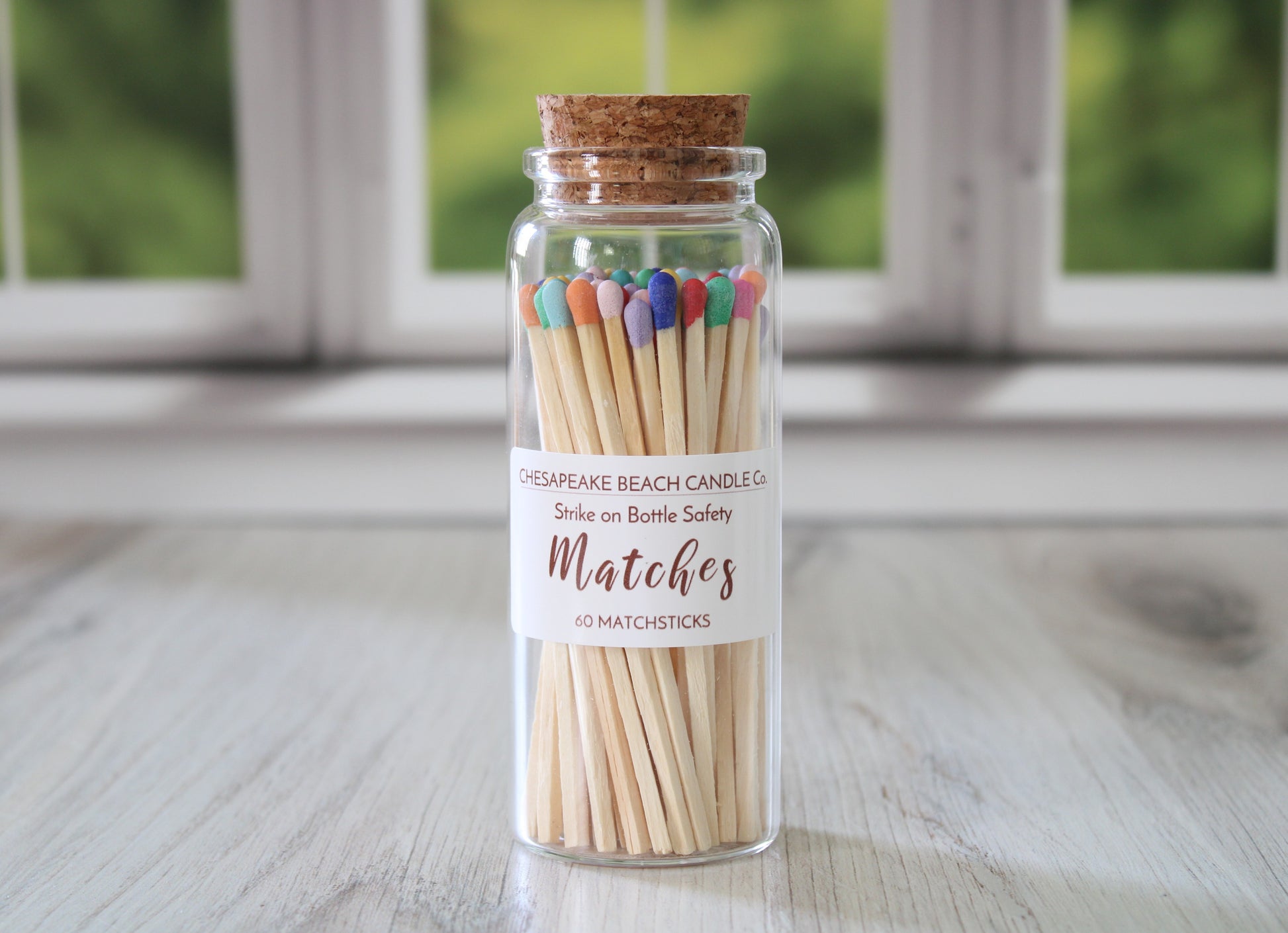 Our long safety matches are both stylish and functional. They come in a variety of colors inside a decorative glass jar complete with a cork stopper and a striker strip on the jar. Place them on a coffee table, a stack of books, or next to your favorite scented candle to add charm to your décor. They make thoughtful gifts by themselves or the perfect gift accompaniment to candles. At 3.75" they are long enough that lighting candles as they burn down in deep containers is super easy!