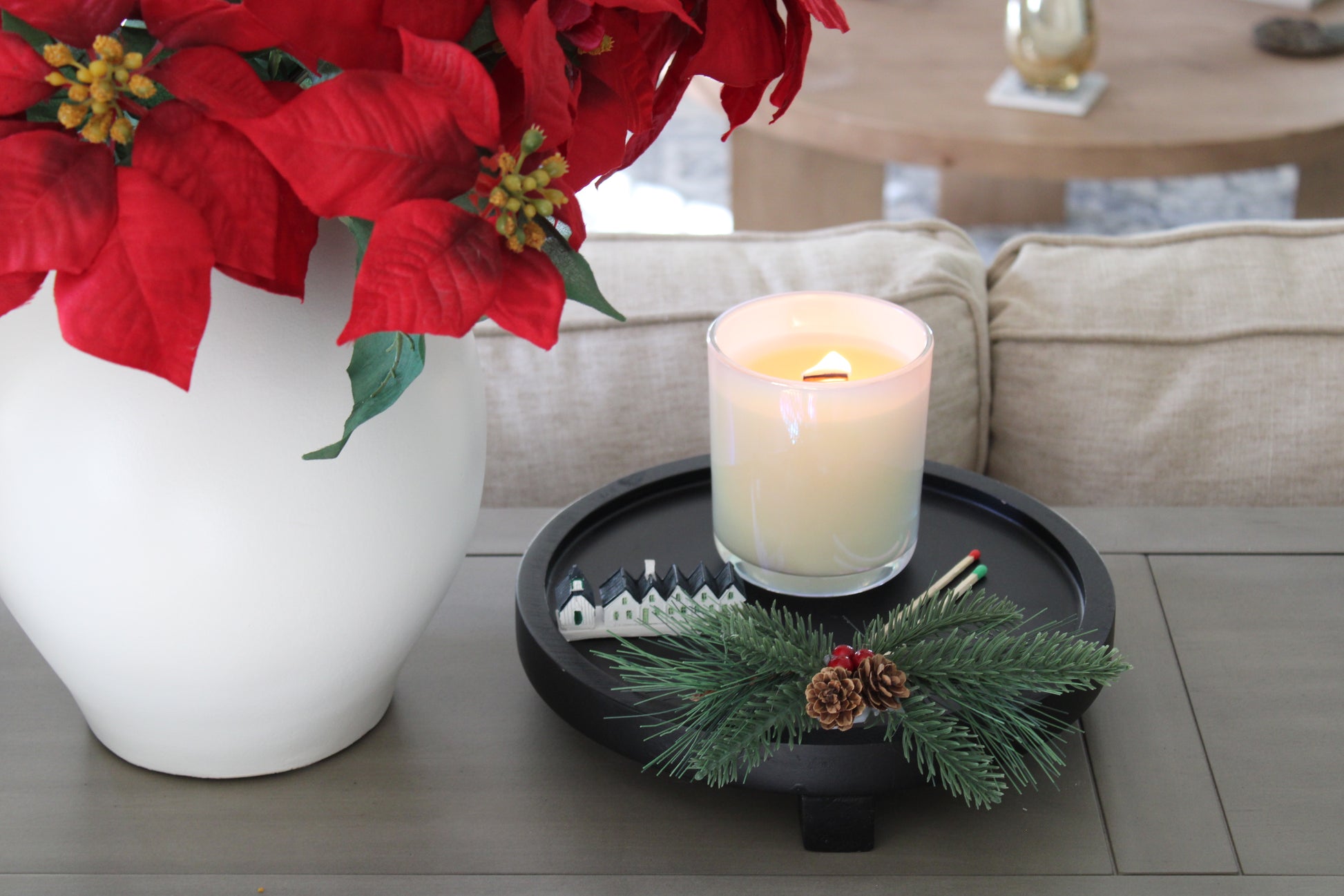 It is very important to trim the wooden wick to 1/8" before every lighting, so the wax can be drawn up the wick properly. If the wick is too high above the surface or if the burnt wood is not removed, the flame may become too low and even self-extinguish. You can use a wick trimmer, nail clippers, or even your fingers to gently break off and remove the burnt parts of the wick before lighting. Just make sure that your candle has cooled and the wax has hardened because you do not want to have any ash or wick debris falling into the wax.