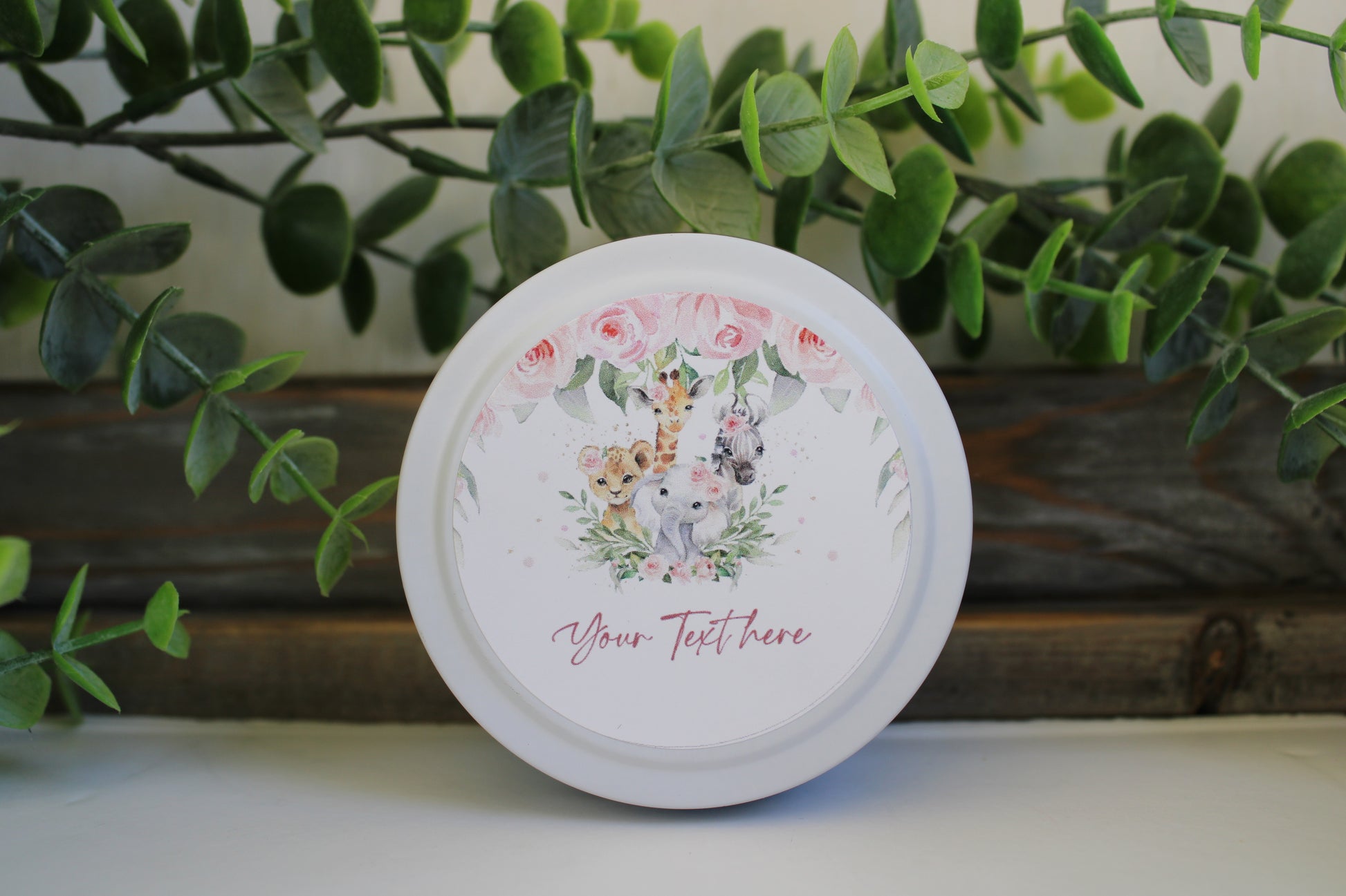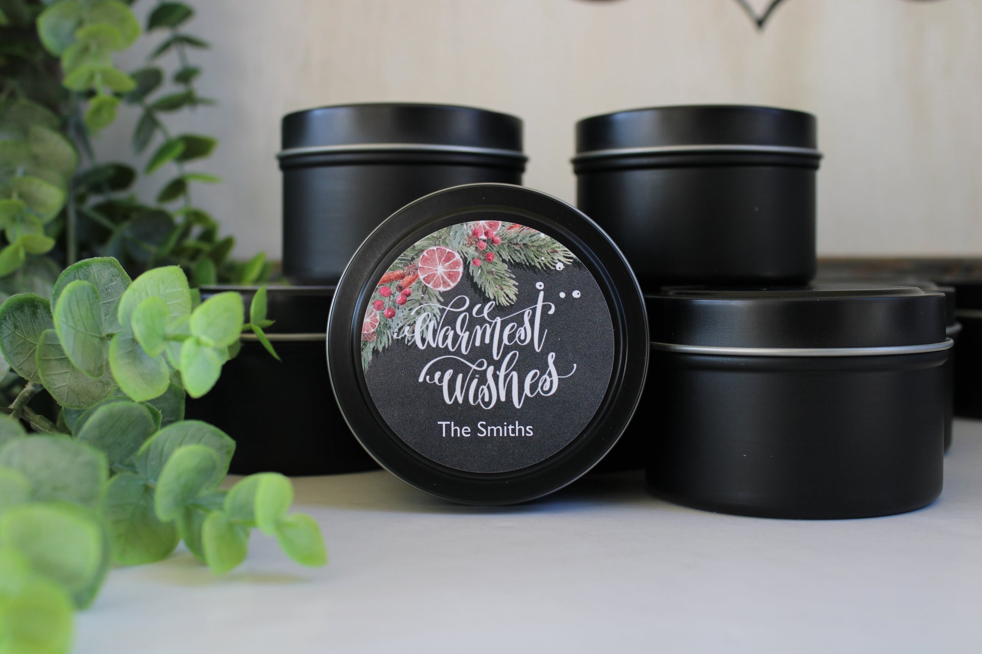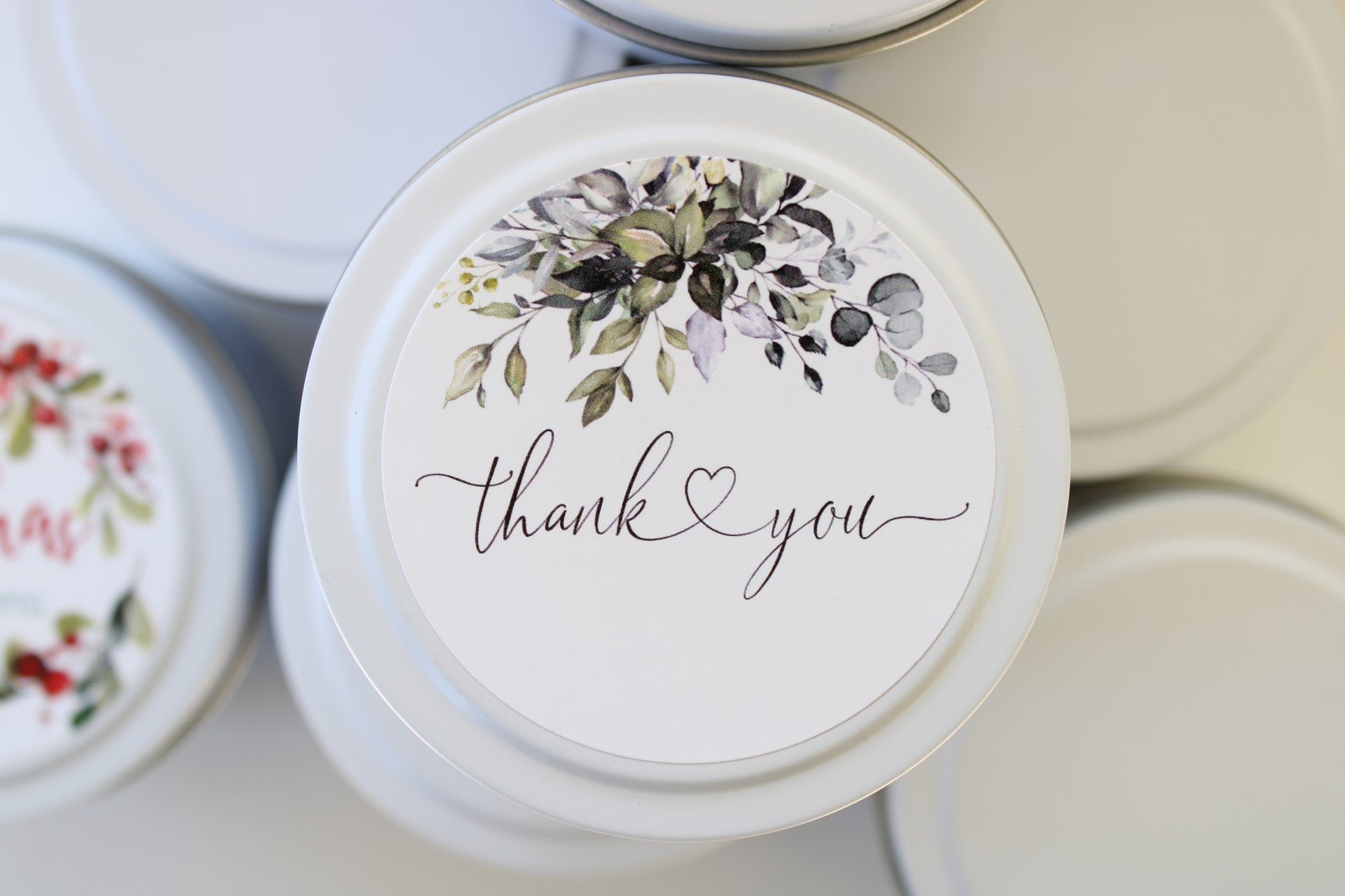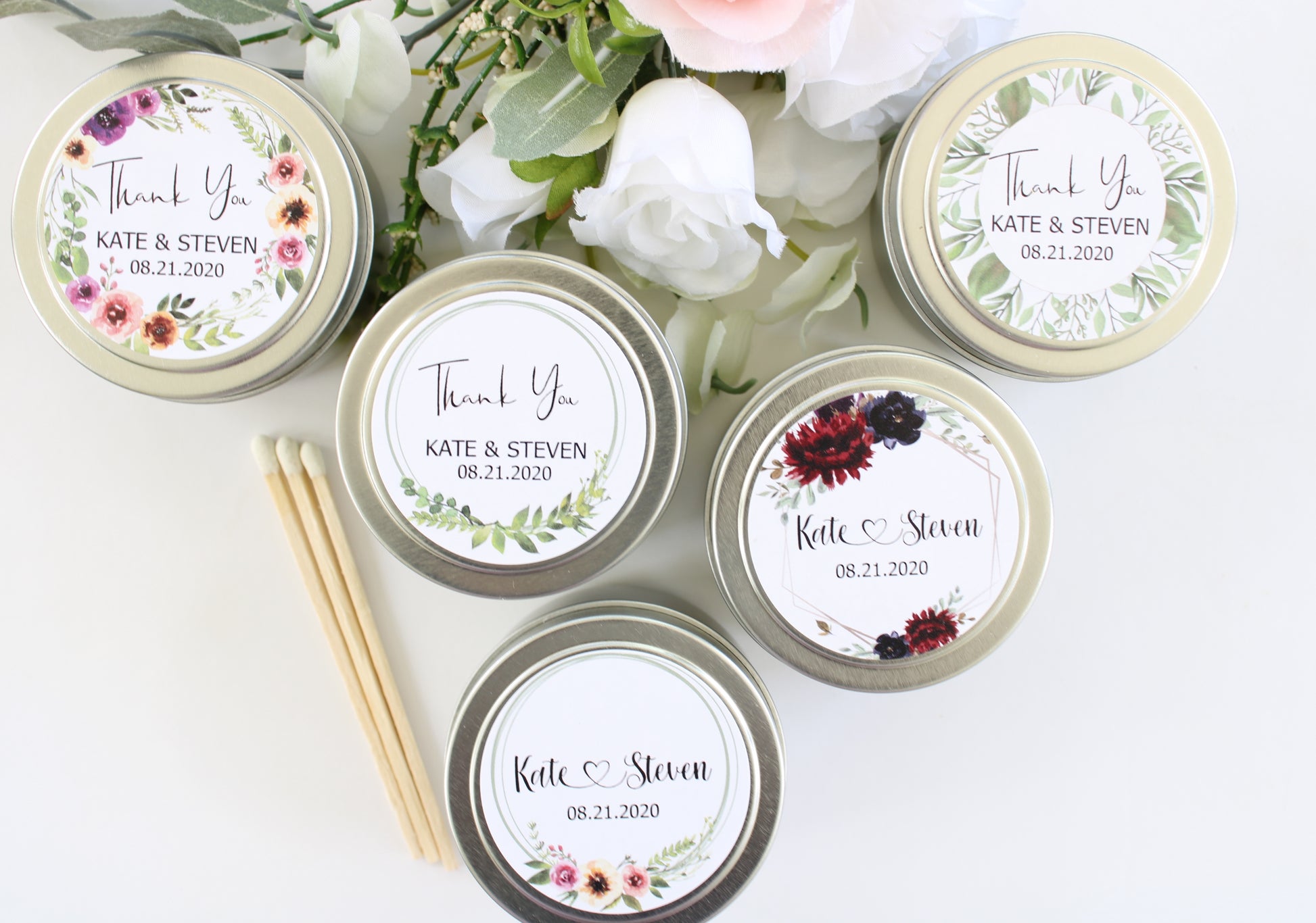These cute 4 oz tin candles make perfect gifts for weddings, baby showers, anniversaries, and birthday parties, or as stocking stuffers and corporate gifts. You can chose from the existing designs or request a custom label with your logo or images to reflect your wedding or party theme.