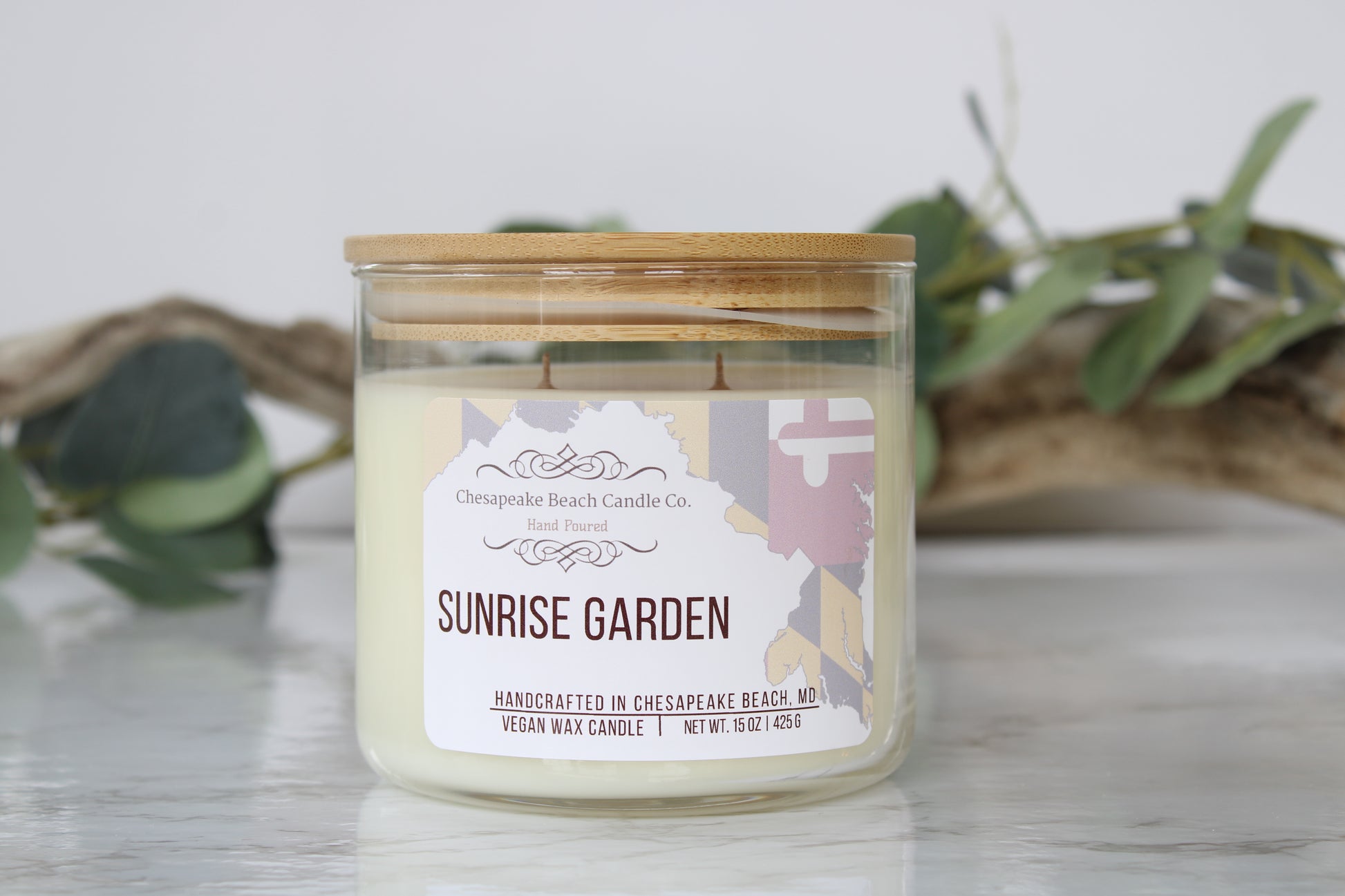 Sunrise Garden scent is inspired by the peaceful charm of a small park in North Beach, MD, nestled along the Chesapeake Bay. A winding path, flanked by lush greenery and koi ponds, leads to the tranquil shade of a grand gazebo, where nature’s beauty unfolds. The fragrance captures the delicate sweetness of blooming gardenia and the creamy allure of tuberose. This candle brings the serene essence of Sunrise Garden into your home, filling your space with calm and natural elegance.