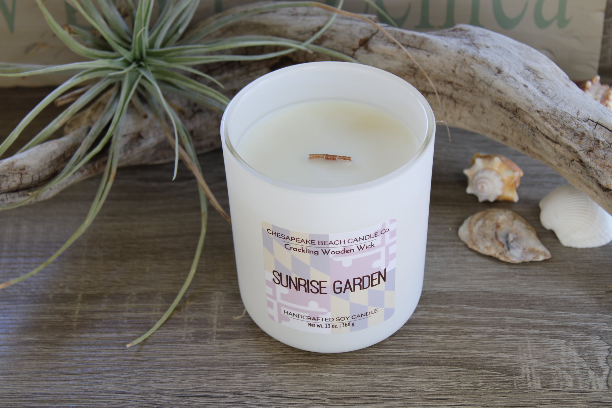 Sunrise Garden scent is inspired by the peaceful charm of a small park in North Beach, MD, nestled along the Chesapeake Bay. A winding path, flanked by lush greenery and koi ponds, leads to the tranquil shade of a grand gazebo, where nature’s beauty unfolds. The fragrance captures the delicate sweetness of blooming gardenia and the creamy allure of tuberose. This candle brings the serene essence of Sunrise Garden into your home, filling your space with calm and natural elegance.